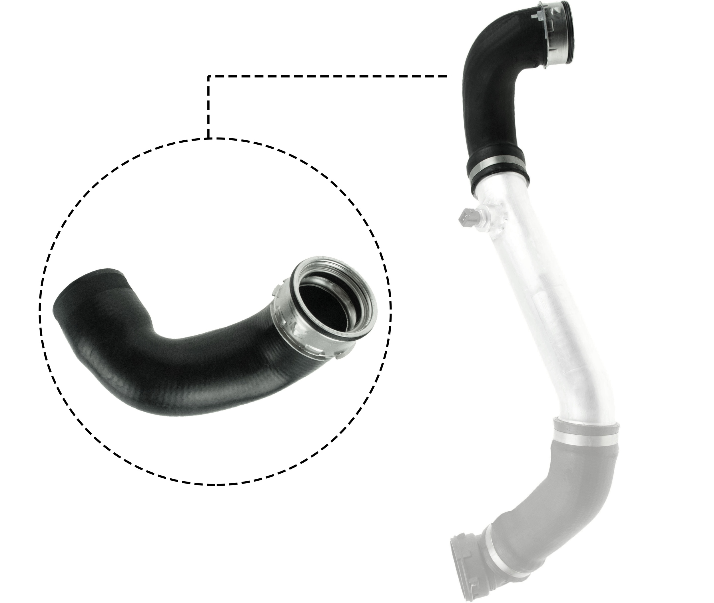BMWColore : nero, Diametro interno 1 [mm] : 61,5, Diametro interno 2 [mm] : 54, Lunghezza d. flessibile [mm] : 225, Materiale : AEM (gomma etilene acrilato), Rispettare l'opuscolo :