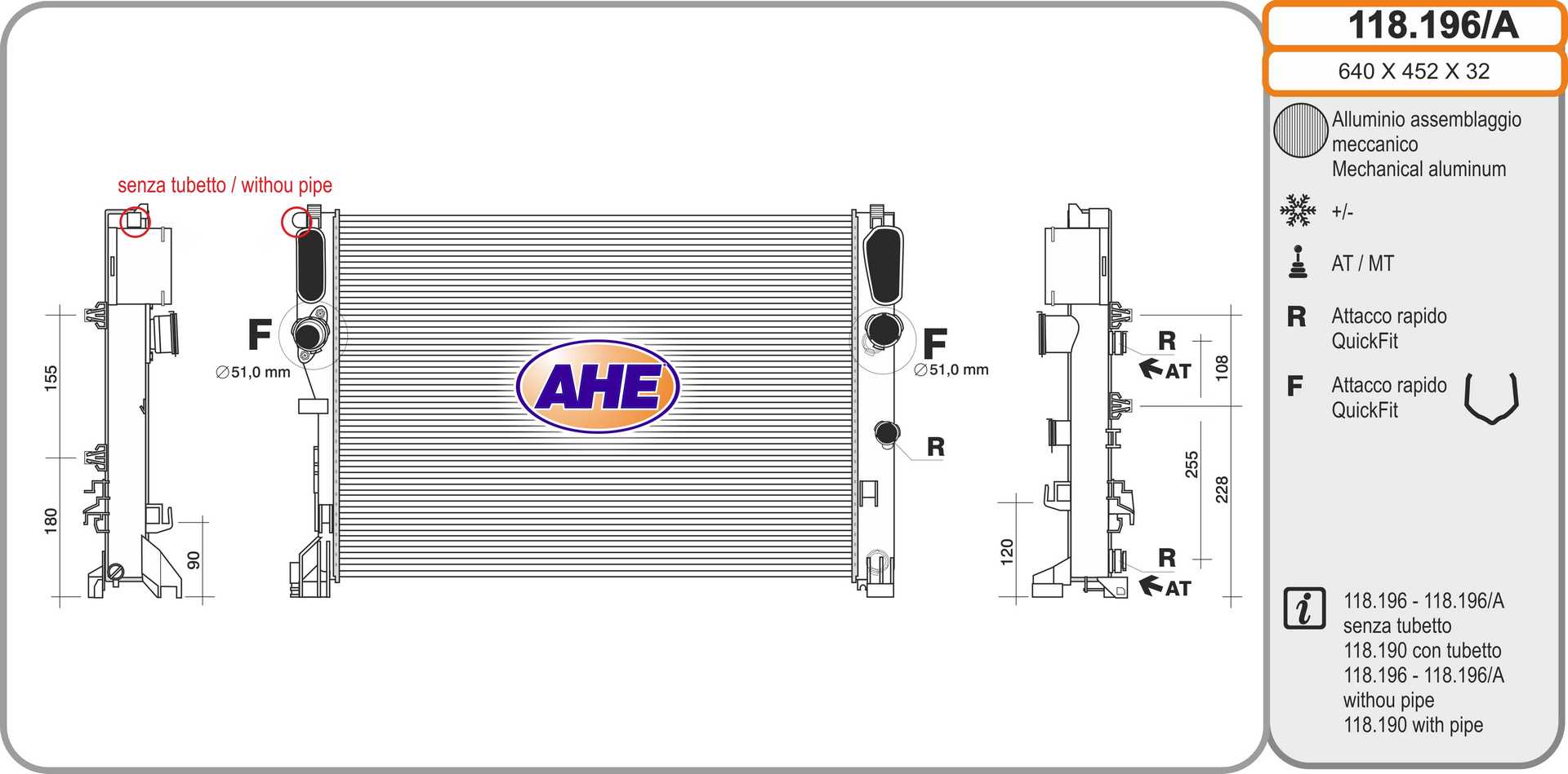 | Tipo radiatore | Alette di raffreddamento saldate |